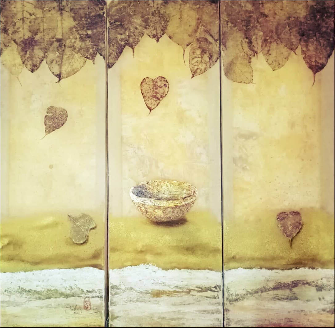 Though admitting that she is not so passionate, concerns about art are always with her. Her paintings have been exhibited in India, America and will be in France, Switzerland, Germany, etc., in the near future. Those busy activities did affect her creativity. But realizing that painting is also her responsibility, she always finds time for expressing her experiences and feelings with the brush when she feels comfortable in mind.