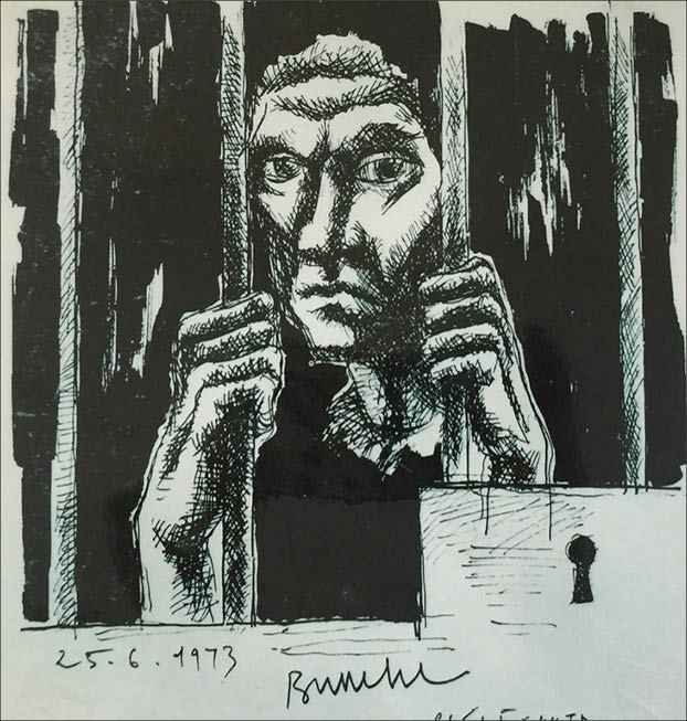 During his time in prison, he never stopped struggling. He drew on everything possible such as on cigarette packs, smoking papers, matches, scrap papers, book covers and so on. By every means, his paintings and writings continued to appear in the underground publications in prison, and then were transferred everywhere and even abroad. Some of his paintings have been kept at the Boston University Library (USA) and printed by several progressive newspapers in France, Germany and Canada. Sometimes his paintings were taken to Hanoi during the tense Paris talks.