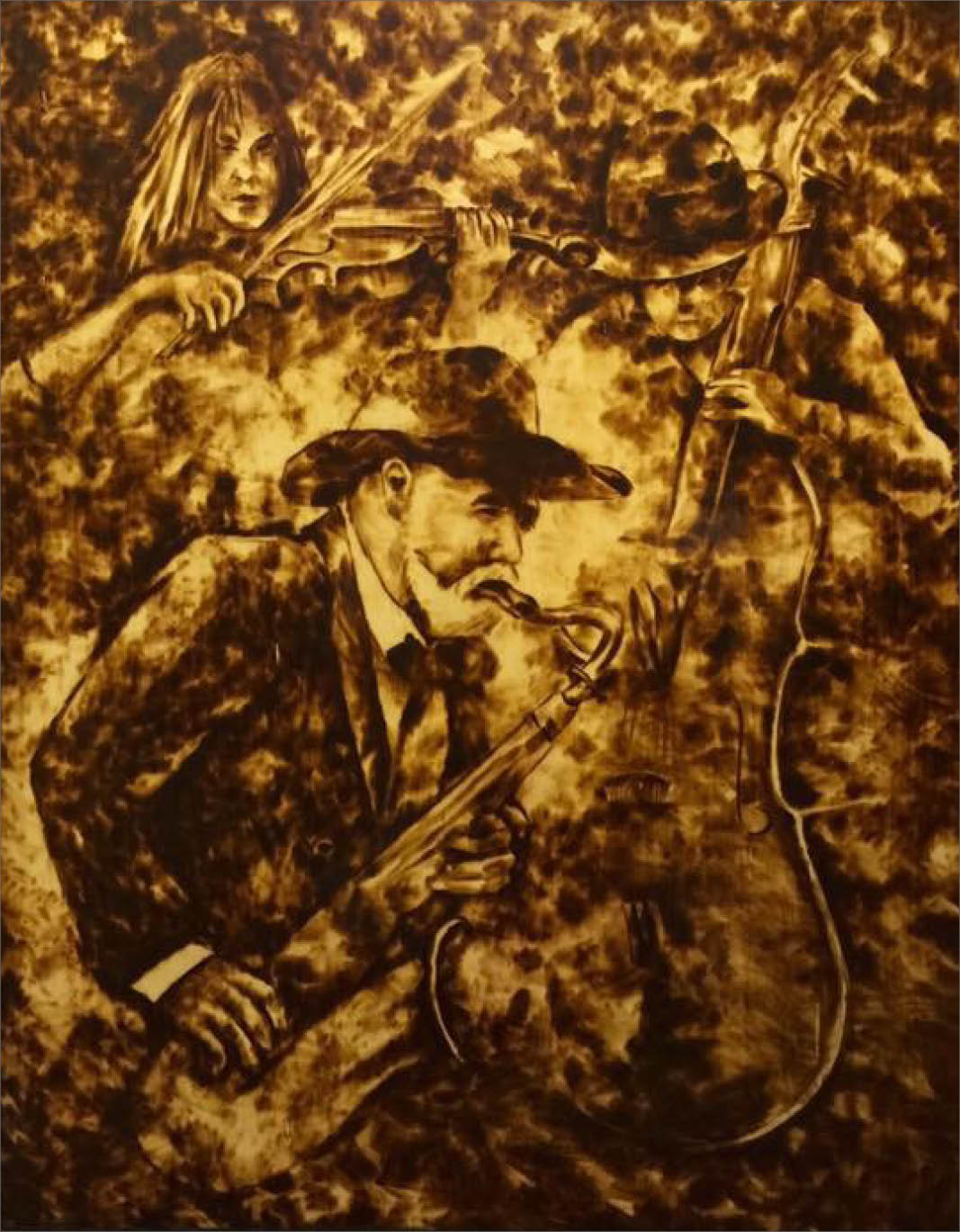 Fire-pen creations are collections of wood burn marks as a result of heat. The smoky brown hue of burnt wood is the only thing that shapes the artwork.