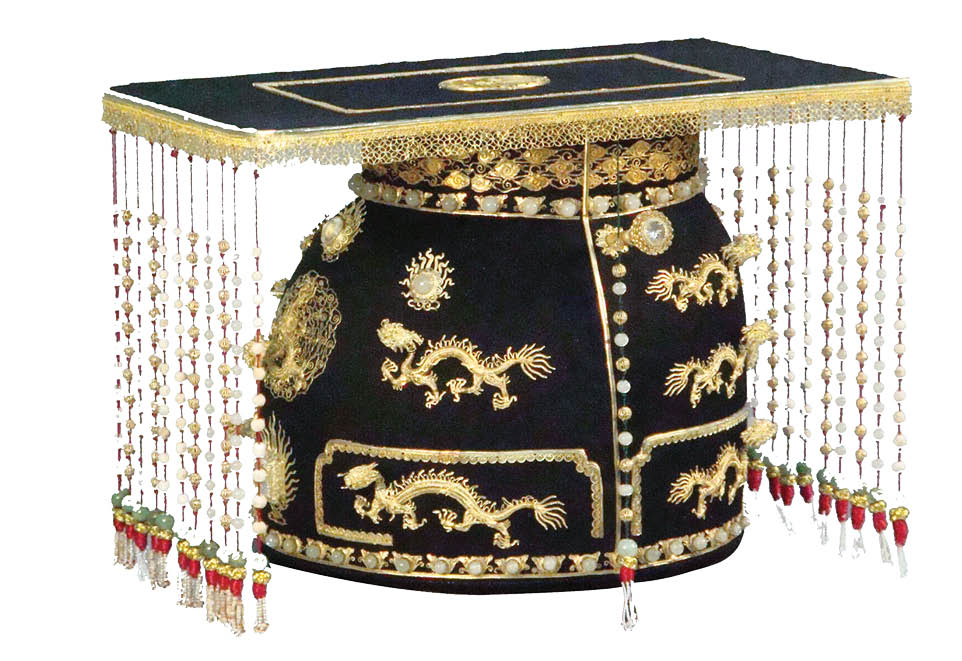On each hat for Great Services, there is 31 dragons of gold, 30 square flowers of gem, 140 diamonds and pearls; the hat for Nam Giao Sacrificial Ceremony has 12 dragons, 24 ribbons knitted with pearls and precious stones.