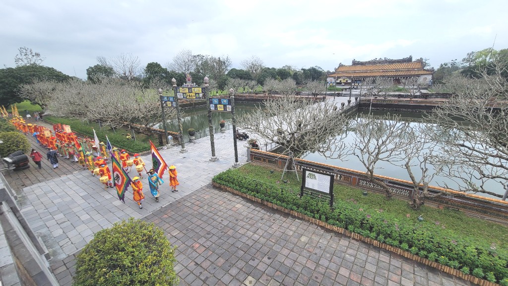 On the basis of the royal materials, Hue Monuments Conservation Center conducted the ritual of setting up the Neu pole in the royal palace so as to create a joyful atmosphere on the occasion of the Lunar New Year.