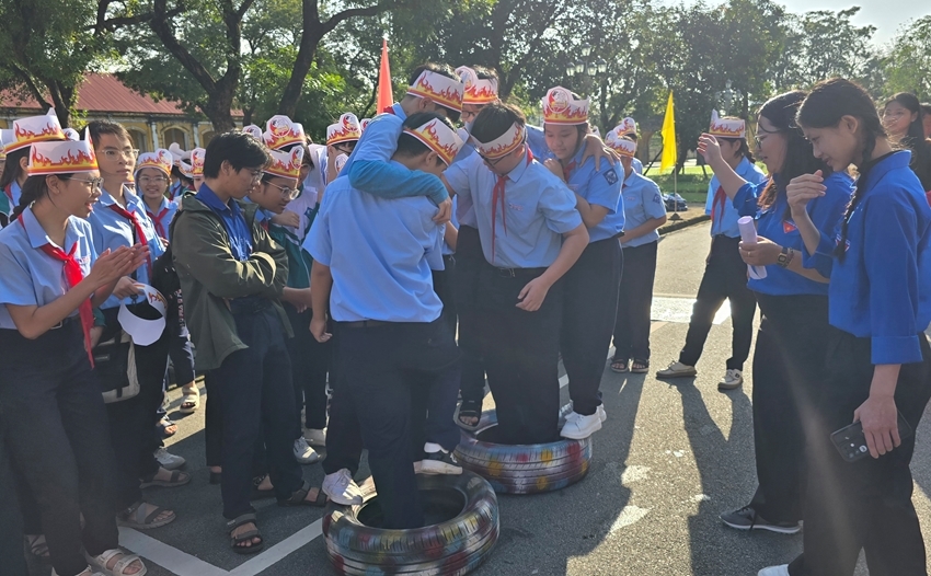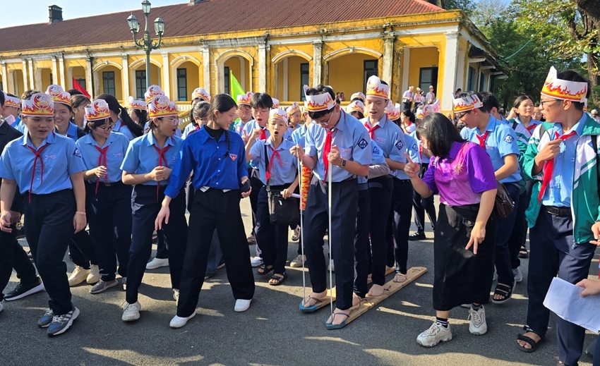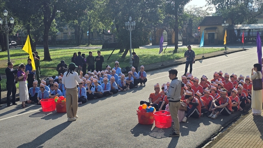 The event attracted 160 students from Thong Nhat Secondary School and Tran Cao Van Secondary School. After visiting and learning about the documents and the story of Ham Nghi - the young and steadfast emperor who chose exile rather than submission to the French colonists - at the exhibition space “Emperor Ham Nghi, life and arts”, the students participated in exciting games such as “Delivering the edict”, “Receiving the edict”, “Crossing mountains and forests”, and “Rain of arrows, storm of bullets”, etc.
