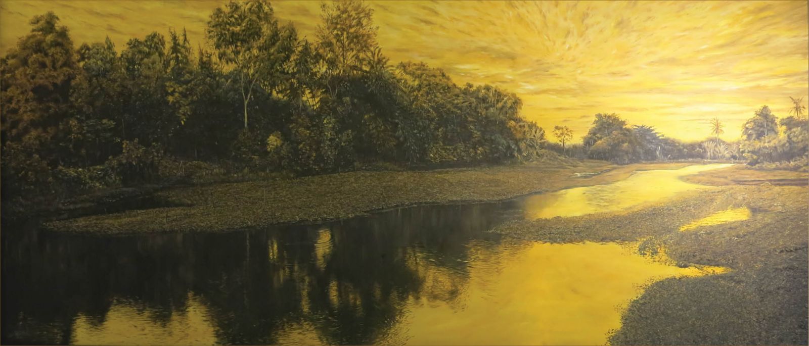 “Beauty of Nature” by Vo Quang Phat is his own search of what he is exploring. The way he mixes colors and materials in his painting creates aesthetic feelings for the viewer. If “Scar on the Cabinet” and “Beauty of Nature" are their explorations in contemporary art, “Village River” is classical. They are all successful works that won Young Art Prizes by Vietnam Fine Arts Association in Thua Thien-Hue.