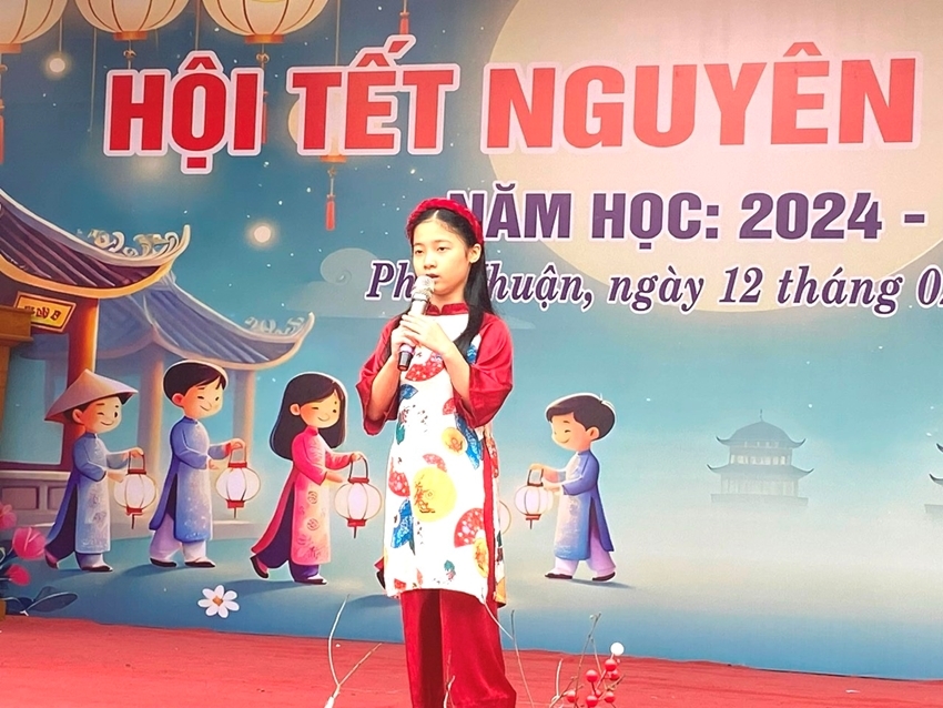| Le Loi Primary School students recited poems to celebrate the Nguyen Tieu |