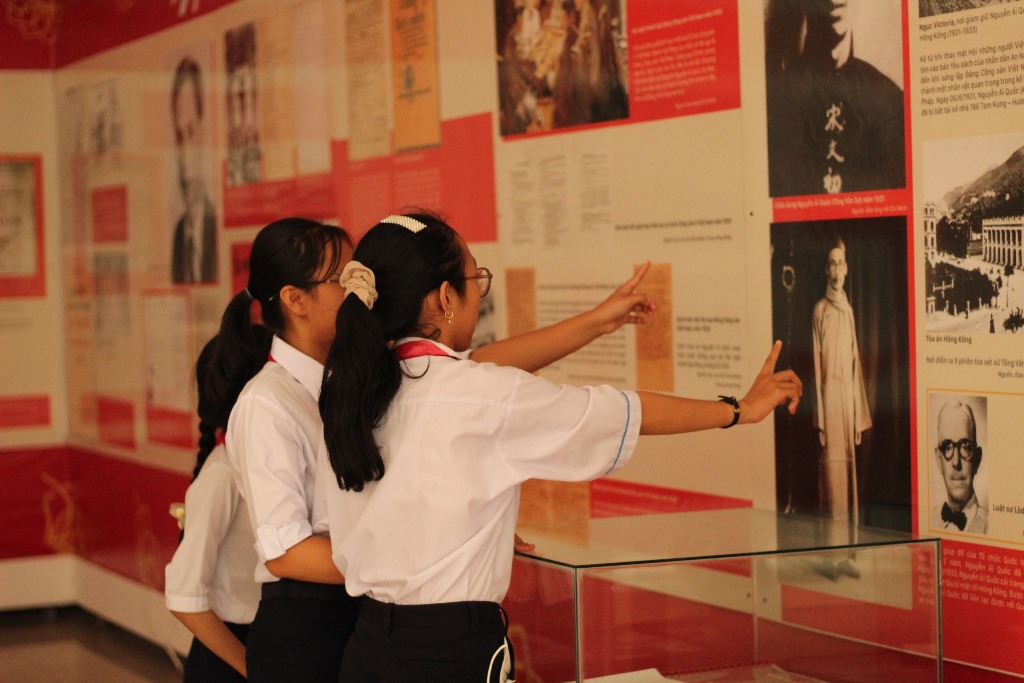 Secondary school students in Hue City learning about President Ho Chi Minh's career background at Ho Chi Minh Museum in Hue