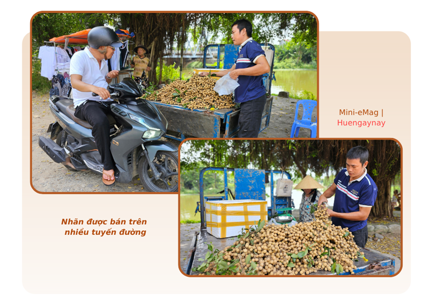In late July and early August, Hue longans can be found everywhere — in markets, along the streets, and along the entire route inside the Imperial City, seemingly infused with a gentle, sweet fragrance. Due to high labor costs for wrapping the fruit or significant profit-sharing arrangements, many households choose to harvest the crop as soon as it reaches a sweet-enough ripeness. Depending on quality, Hue longans sell for 15,000–30,000 dong per kilogram on the open market, while netted ones fetch 50,000–100,000 dong per kilogram. During the longan season, many fruit shop owners post regular updates on their fan pages to advertise the fruit. According to the owner of a stall in Thuan Hoa Ward, there are days when she sells 100 kilograms yet still cannot meet demand, as local longans are naturally fragrant and sweet, grown without fertilizers or chemicals.