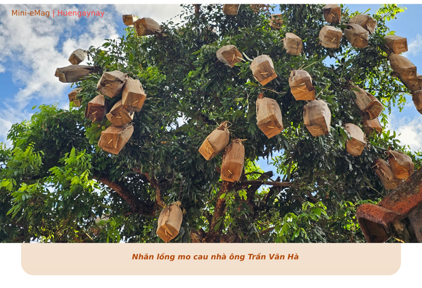 The longan tree wrapped in areca spathes has attracted many unfamiliar visitors to Mr. Ha’s home, simply because it evokes childhood memories for many people in Hue. Ms. Ho Thanh Hien, who often stops by during her morning bike rides, recalled: “As a child, I frequently helped my father wrap longans in areca spathes for others. Those were hard, unforgettable days, but this craft helped my family earn extra money to buy rice. Because of that, I learned that longans facing east are always sweeter and more fragrant, as they receive more sunlight.”