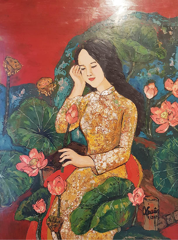 “Charming Lotuses” (lacquer) by Truong Thi Huong Xuan