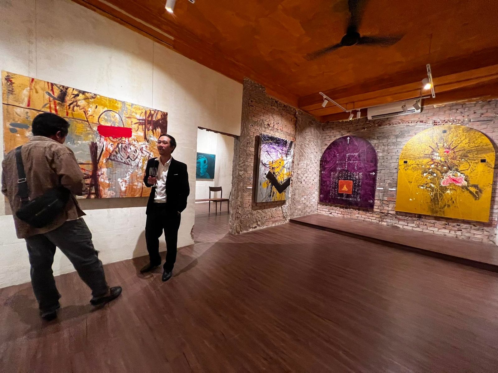 For Tran Huu Nhat, abstract works convey meaning clearly but not to be seen with the eyes but to be felt in the way that order and chaos coexist. Meanwhile, Nguyen Duc Nghia offers another existential fusion of inner emotions as its proliferation is overlaid with a very real human figure.
