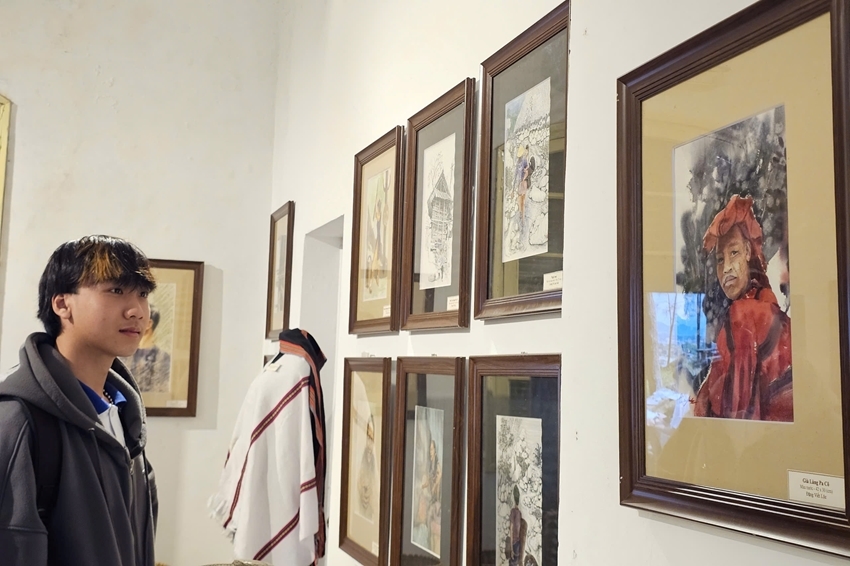 The exhibition showcases nearly 150 sketch paintings from the collection of Hue Museum of Fine Arts. These artworks are the “products” of the sketching program “A Journey of Sketching Traditional Cultural Beauty of A Luoi”, held in 2023 and 2025.