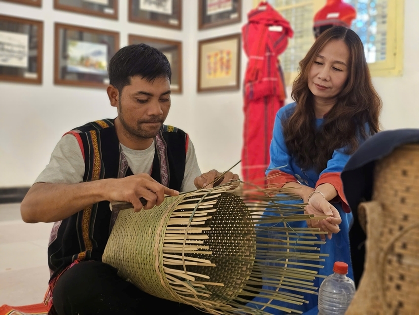 The exhibition also features a space showcasing, introducing, and demonstrating Zeng weaving craft and the traditional attire of ethnic minority communities in A Luoi. Additionally, various handmade products, including wood carvings, ceramics, and basketry… are also showcased for viewers on this occasion.