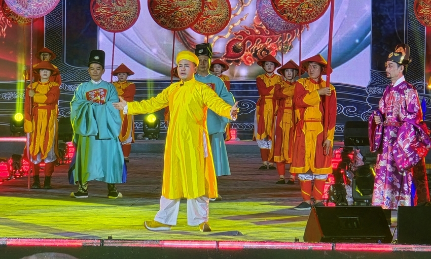 The program opens with the act “Ngu xuan hoa van” (Imperial spring harmony) – a spring poem by Emperor Minh Mang at Thai Hoa Palace, portraying the sovereign’s contemplation of spring’s arrival:
