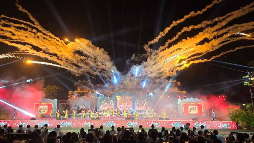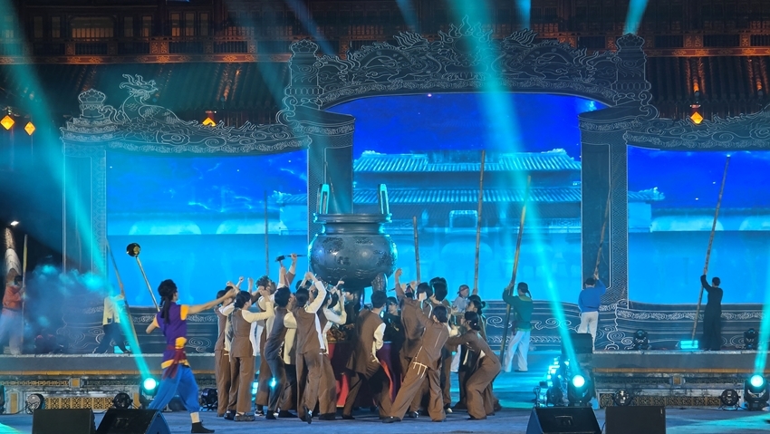 In “Thi di ngon chi,” imperial poems are woven into a narrative enriched by music, dance, drama, lighting, smoke, and pyrotechnic effects. Ngo Mon at night becomes both solemn and luminous, transporting audiences back to a golden era of the imperial capital.