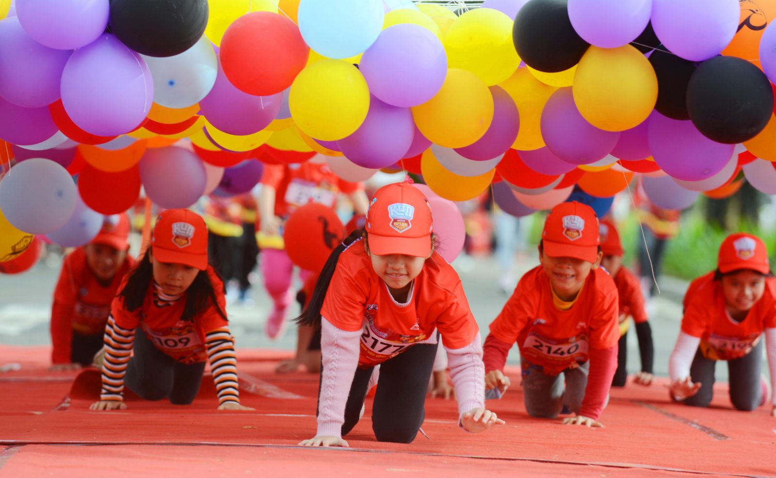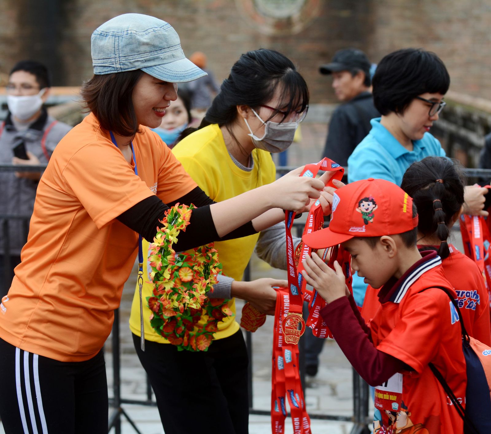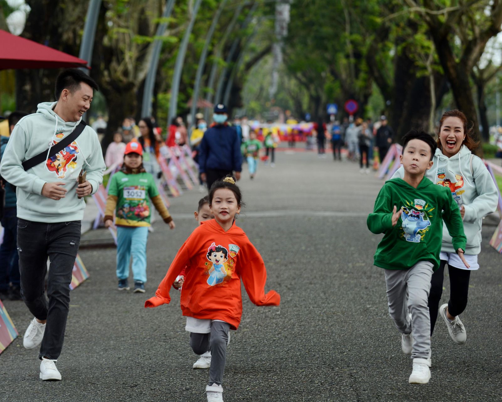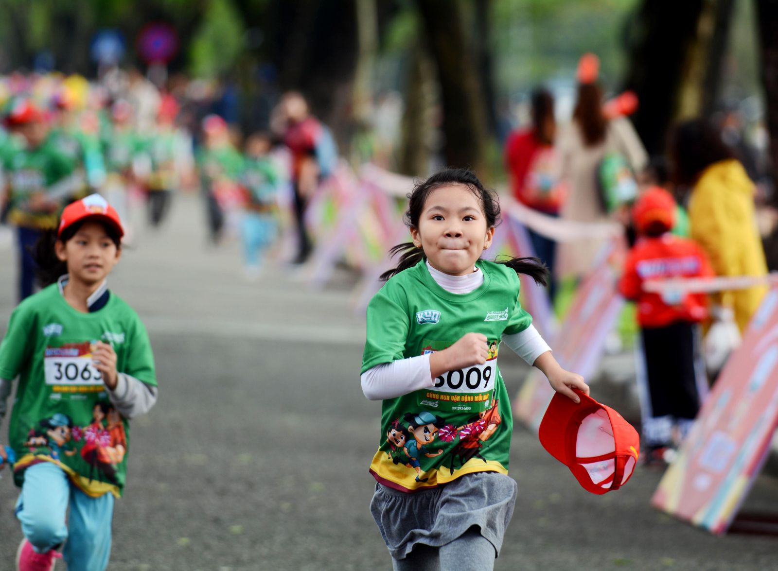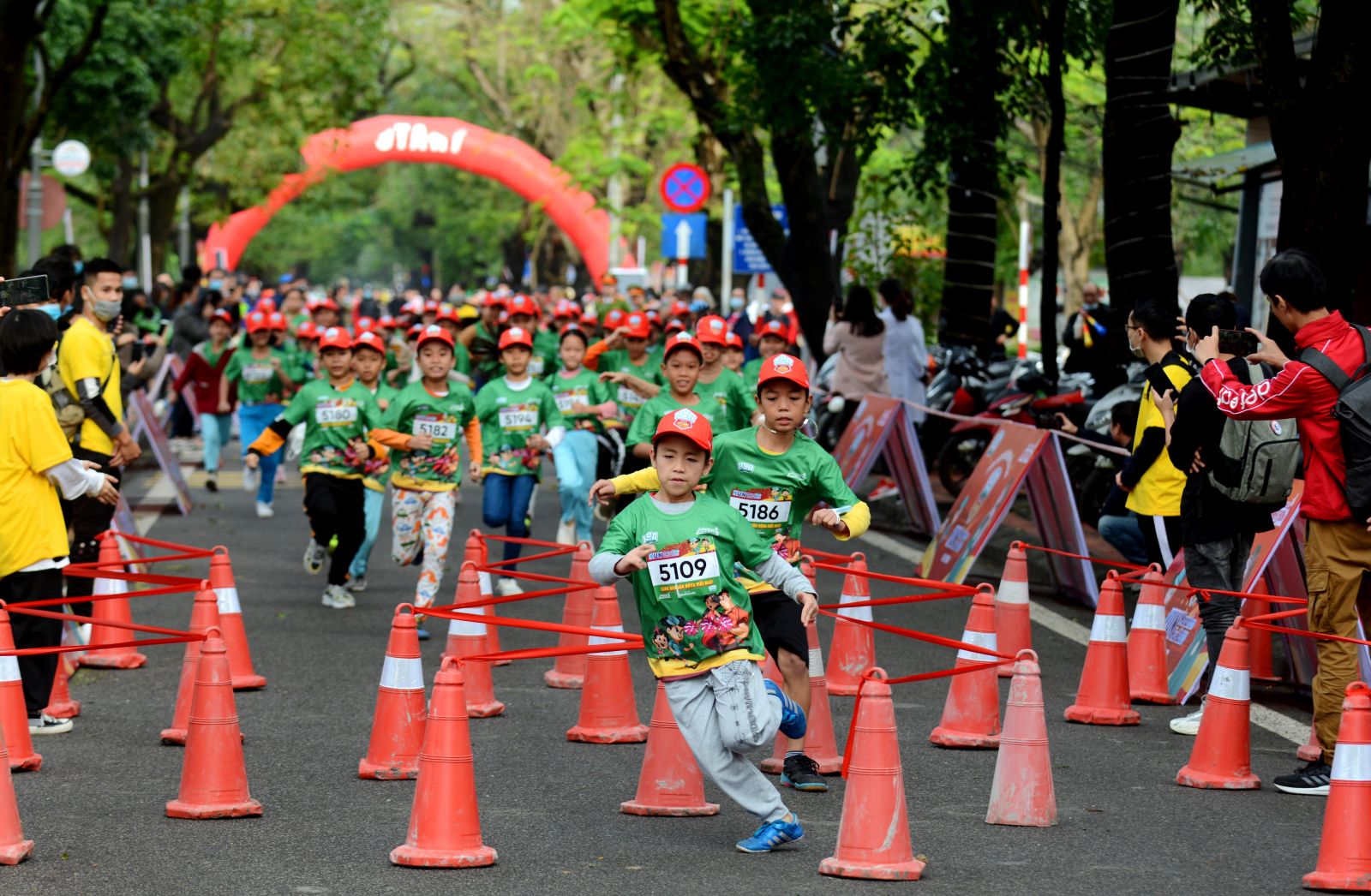 Starting from Nguyen Van Troi Park, 1,000 athletes ranged from six to ten years old from many provinces and cities across the country were divided into ten groups. Each group started ten minutes apart, passed through Doan Thi Diem Street and August 23 Street, and finished in front of the Noon Gate Square, with a distance of one kilometer.