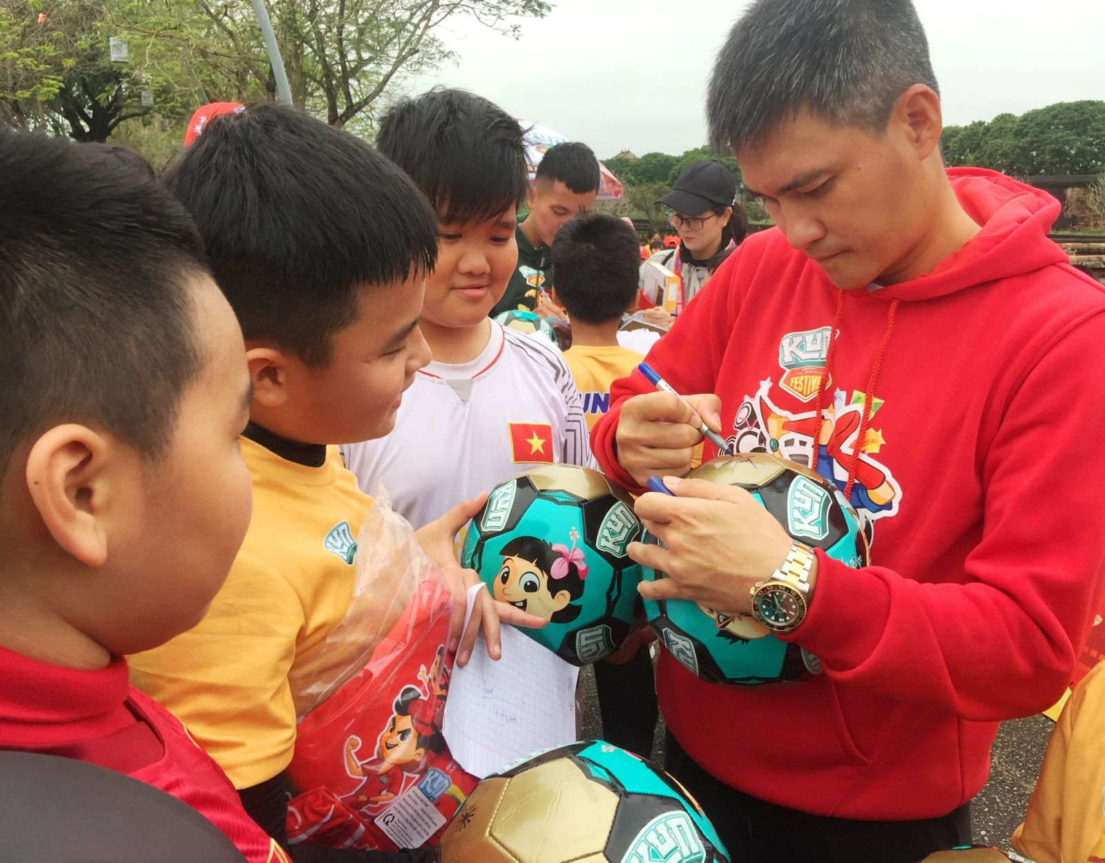 The joy when receiving the signatures of former national football player Le Cong Vinh in the interaction activity