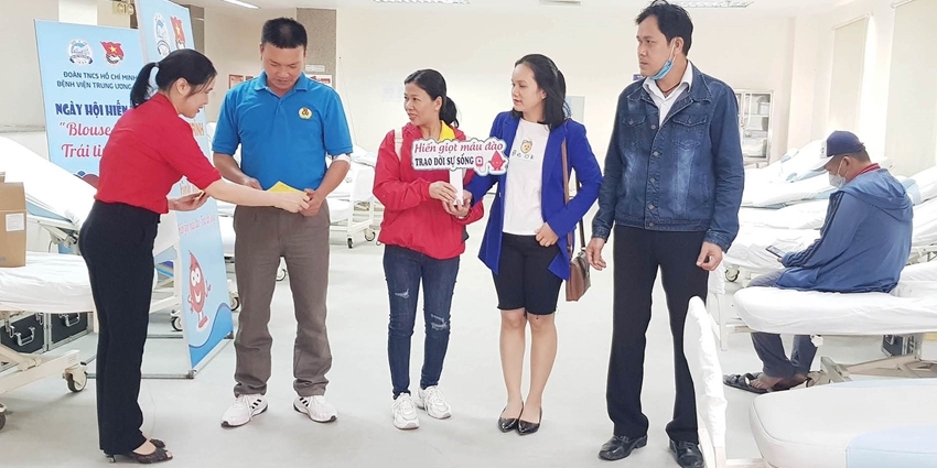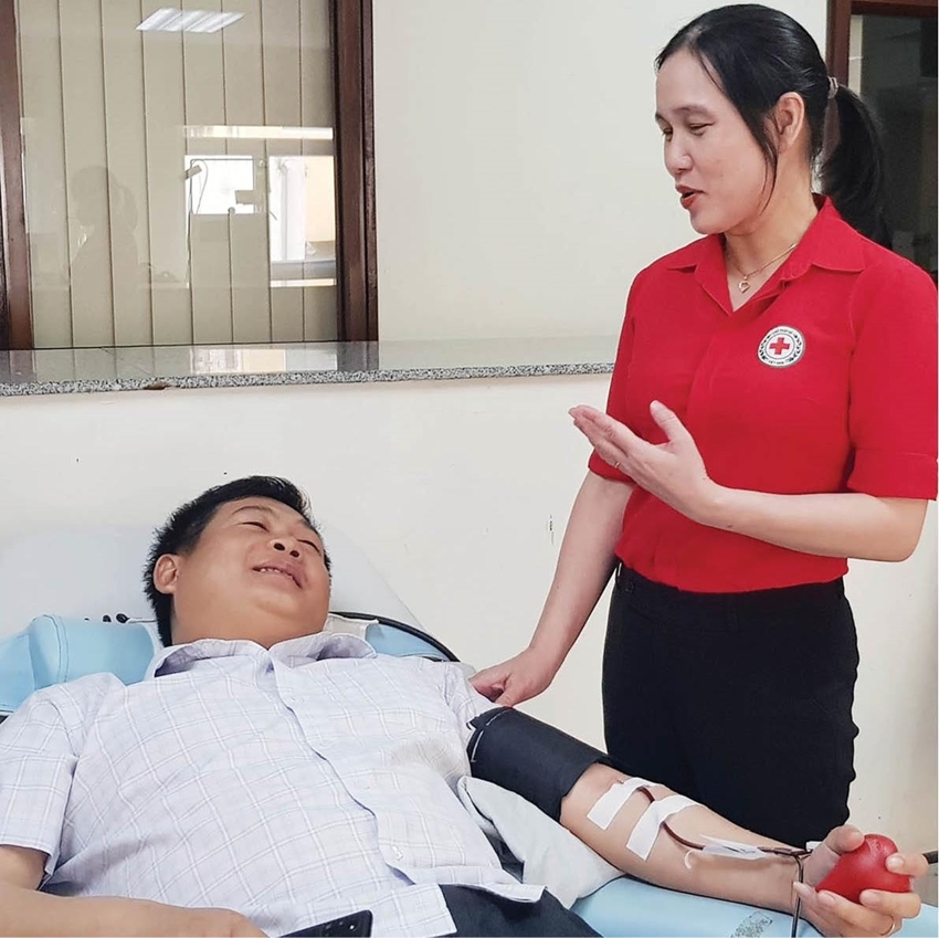 | Ms. Ngoc Trang encourages members to participate in donating platelets |