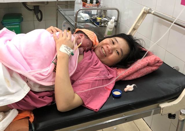 Laboring at the moment of transferring to the (Lunar) new year 2019, 32-year-old pregnant woman named Ho Thi Da Thao, from Huong Vinh, Huong Tra, Thua Thien Hue for the second time gave birth to her son as the clock stroke midnight. With the method “skin-to-skin contact” of Dr. Chau Khac Tu (Ph.D.), Head of the Department of Obstetrics, Hue Central Hospital, was in charge of the caesarean section as the patient was in severe pain, having history of C-section 5 years ago and she was at risk of uterine rupture.