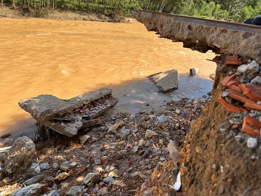 | Heavy rain caused stream bank erosion, affecting the lives of residents in Khe Tre Commune |