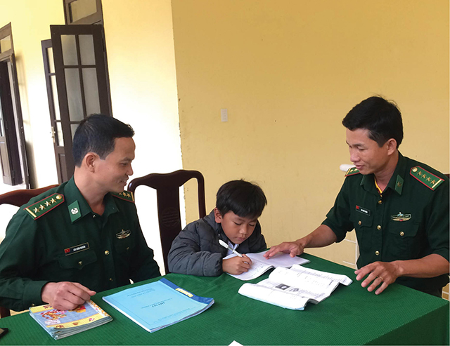 “Knowing his pitiful situation, we try to make up everything we can. Slowly and very gently in tutoring, we help him with his study. Occasionally, we would take him to A Luoi town to play, buy equipment and take him home to visit his mother. With patience and love, we will make him welcome us as relatives,” Captain Luu Xuan Nghiem, Deputy Political Instructor of the Hong Van Border Guard, pondered as he was talking about the parenting of his unit.