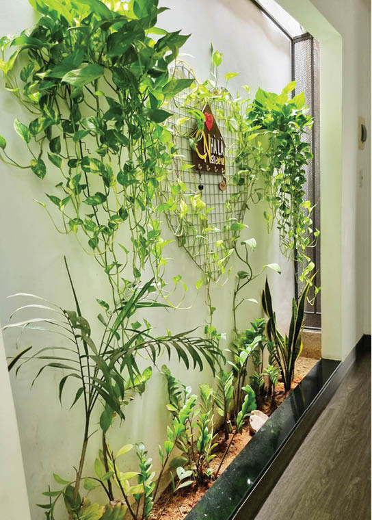 In urban areas, space and land are narrower, so homeowners choose to bring pots of green plants into the house, which would be both "eye-soothing", and play the role of a natural air-conditioner... Architects have a joke about planting trees indoors, that it is a way to build an "air-powered green factory" for the family.