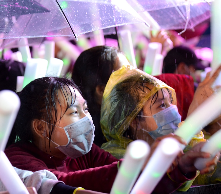 In the New Year's Eve, atmosphere of joy could be seen everywhere. Joining the flow of people down to the street on the New Year's Eve, we felt everyone's excitement, especially young people trying to sneak up in front of the waves of people to get close to the stage.