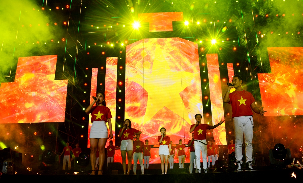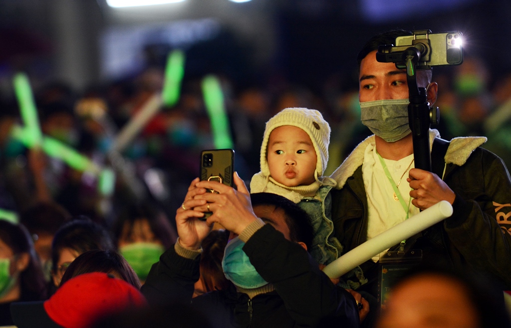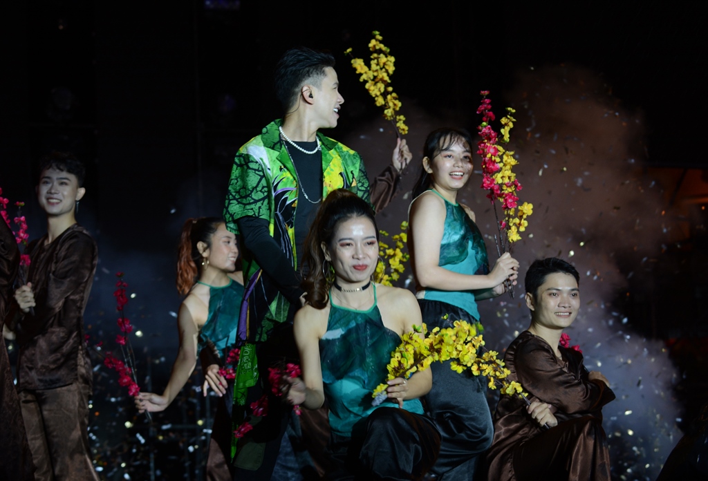 On the stage, the bustling tunes to welcome the spring, and exciting dances were performed by singers and artists such as: Khac Viet, ST Son Thach, Lang LD, Hoang Ton, DJ Le Trinh, DJ Ty, and Tinh Uyen, etc., with all their enthusiasm. Beneath the stage, the atmosphere was also getting hotter. The audience burned with passion, harmonized with the vibrant dances, and together counted down to the New Year in the light of the flares and the Happy New Year melody.