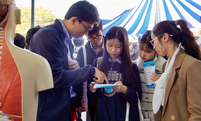 HNN.VN - On January 17, the counseling booth of the University of Medicine and Pharmacy, Hue University, at the 2026 Admissions and Career Counseling Fair, drew significant attention from a large number of high school students across Hue City and surrounding areas.