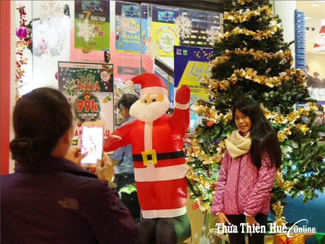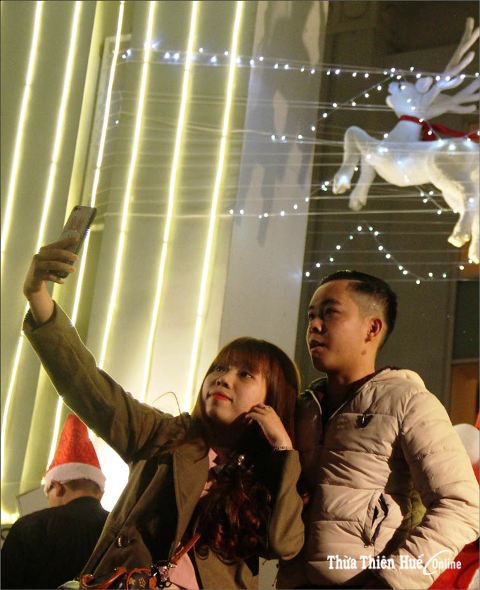 The weather in Hue near Christmas time is chilly, but the streets are still crowded with young people wearing their best outfits to welcome an early Christmas. Of course, a "ritual" that cannot be ignored is taking photos to show off to others that Christmas has come.