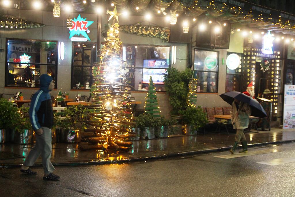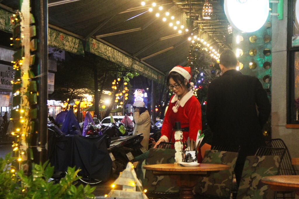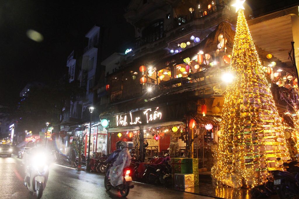 A store on Pham Ngu Lao street is decorated with various patterns related to Christmas