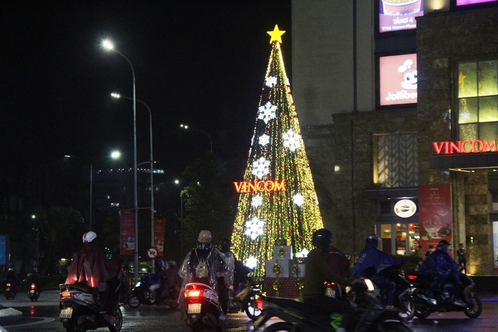 A big Christmas tree is set right at the area of the roundabout in Hue central area