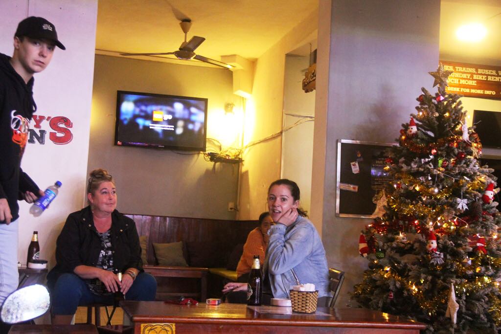 A group of foreign tourists chatting by the Christmas tree during their time staying in Hue