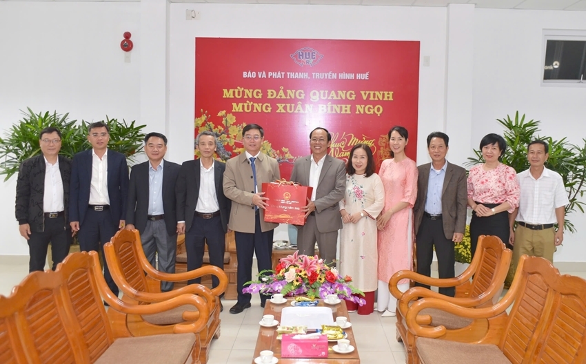 | Secretary of Hue Party Committee Nguyen Dinh Trung visiting and extending Lunar New Year greetings to Hue Newspaper and Radio-Television |