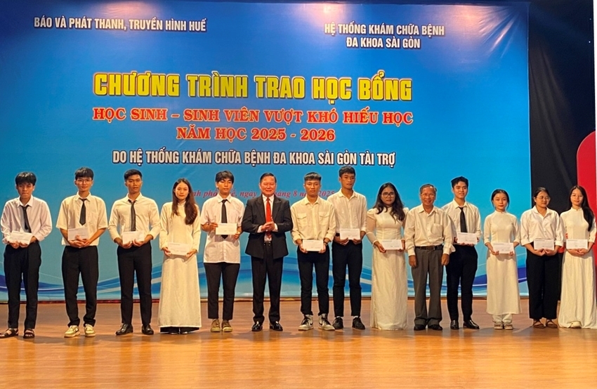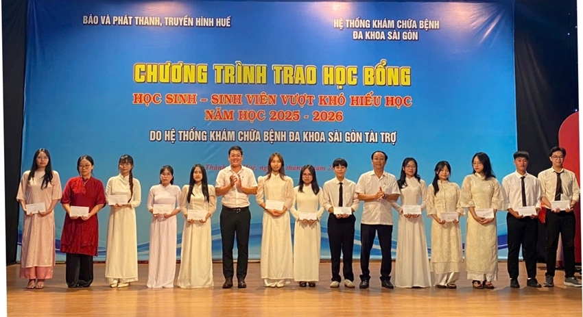 HNN.VN - On the afternoon of August 15, Hue Newspaper and Radio - Television, in coordination with the Saigon General Clinic System, organized a scholarship award program for students who have overcome difficulties in the 2025 - 2026 academic year.