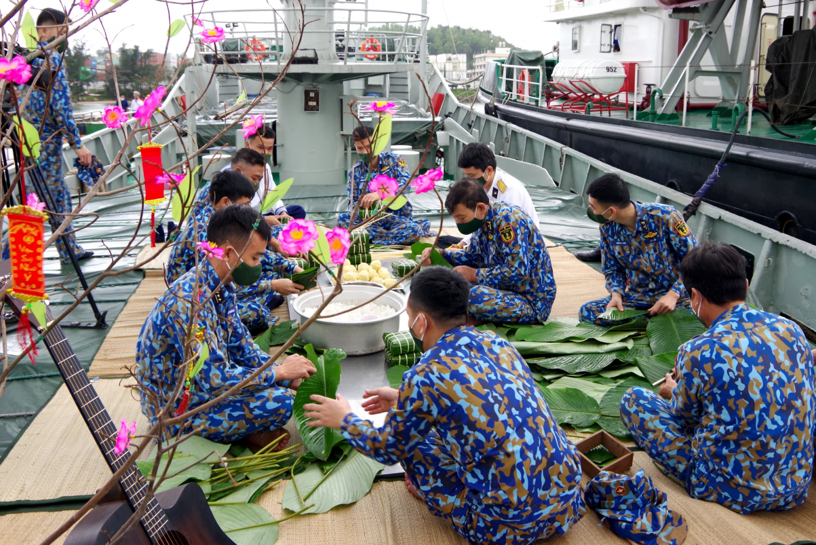 But we inwardly admired the soldiers because despite the toss and wobble of waves, they stood firmly: choosing when the waves hit the two ship sides, like a streak of lightning, they continuously shifted gift boxes from one person to another. The soldiers used their bodies to cover and protect Tet gift boxes against wetness and damage; they were soaking wet from waves and sweat.