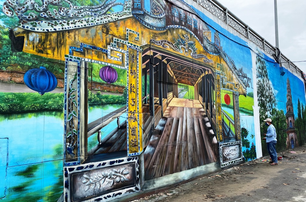 The miniature images of Hue through mural paintings at the foot of Cho Dinh Bridge: