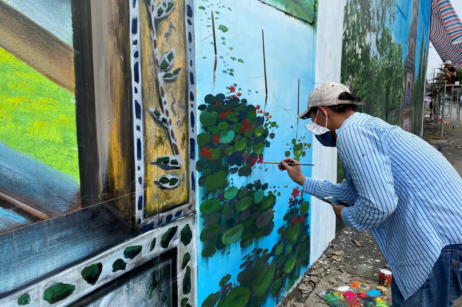 Mr. Cao Tien Quang, Director of Cao Hong Quang Decorative Art Co., Ltd said that the project has been deployed since November 18. Due to the unfavorable weather conditions, the work of panting and decoration has faced many difficulties. It is expected that the mural paintings will be completed by the end of this December.