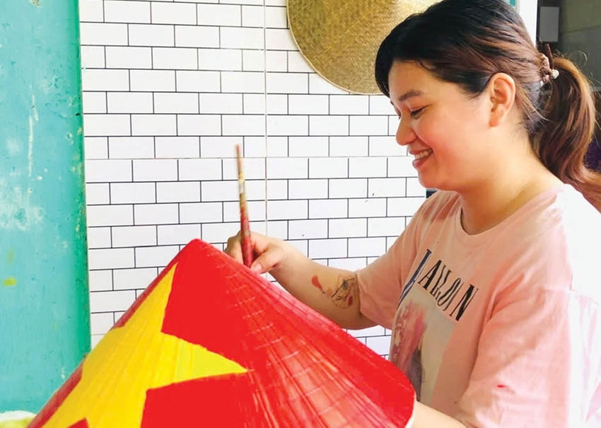 During major holidays like March 26 or September 2, orders for hats of the national flag painted red with a yellow star flood in, and she often has to mobilize her whole family to help. Recently, due to her busy schedule, she temporarily paused the painting experience activity, but she plans to refresh the space with more greenery and flowers to create a more welcoming corner for returning visitors.