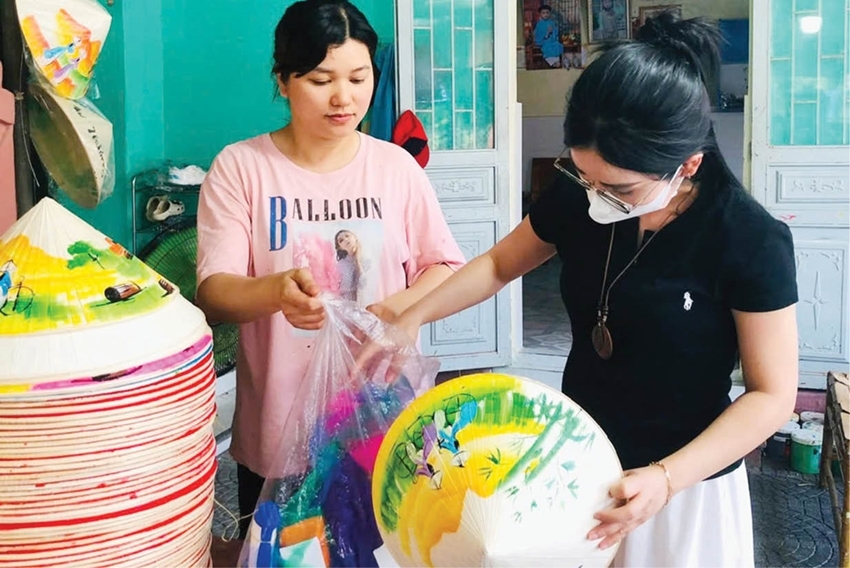 A few years ago, Vi first tried painting on conical hats. The ink was still drying when a group of tourists visiting Hen Islet unexpectedly stopped by and asked to buy them. “The fact that my very first two hats found buyers made me so happy. I also realized that there was a new path I could pursue,” Vi recalled, her eyes sparkling with joy.