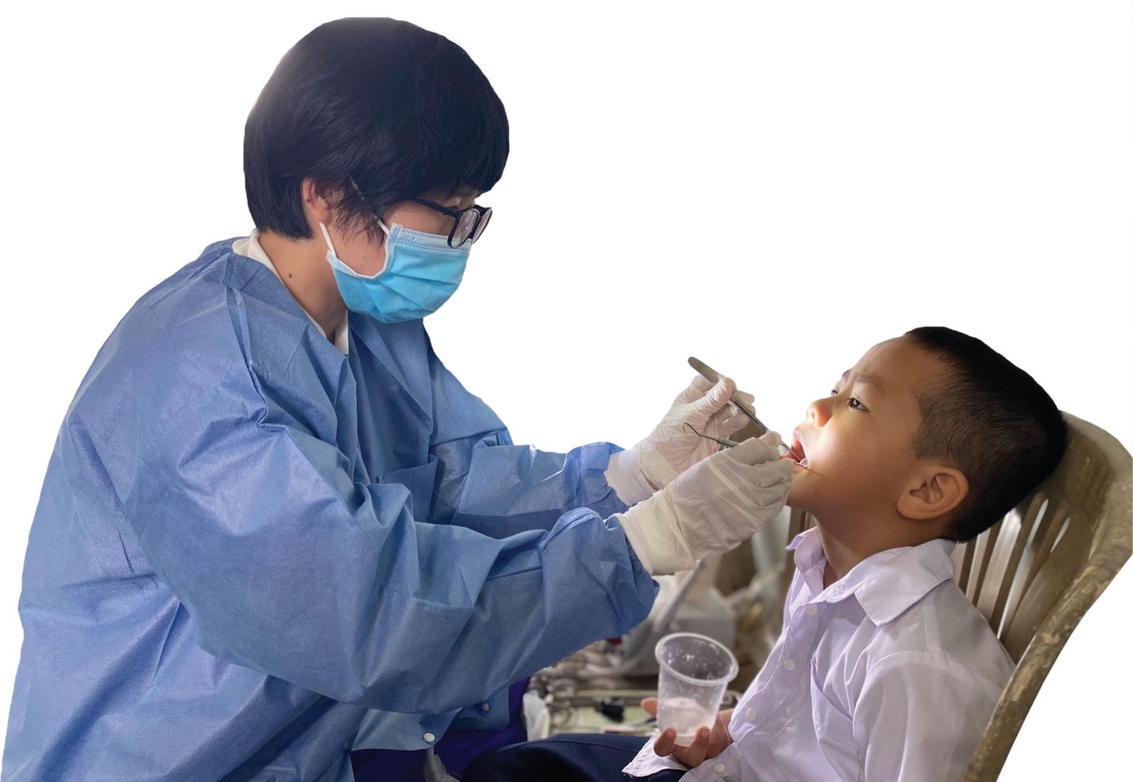 Dr. Nguyen Thi Hoang Yen doing dental examination for children