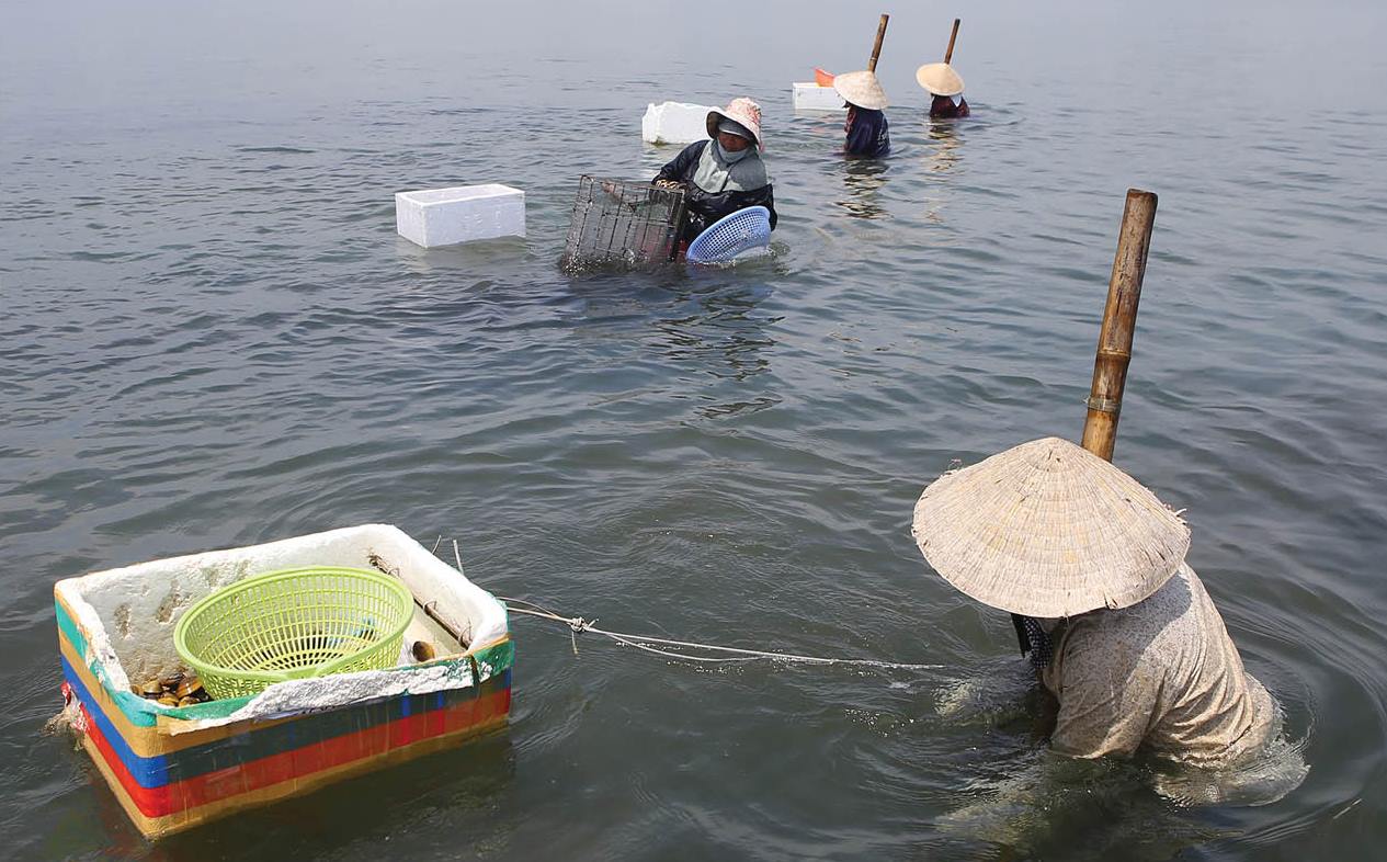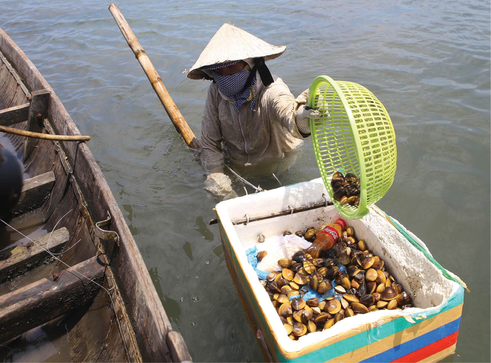In other areas at Tam Giang Lagoon, people often collect clams by groping for them or diving into the sea. Collecting clams in this way at Thuan Hoa B is more effective though it is done completely manually.