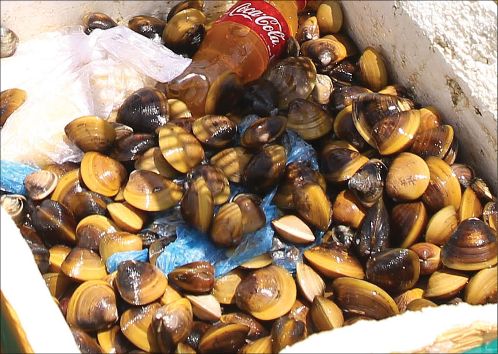 From there, baskets of fresh clams follow women uplands. Clam collecting becomes livelihood for families who live mainly on agriculture.