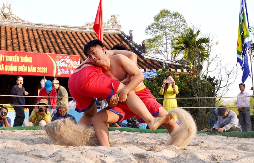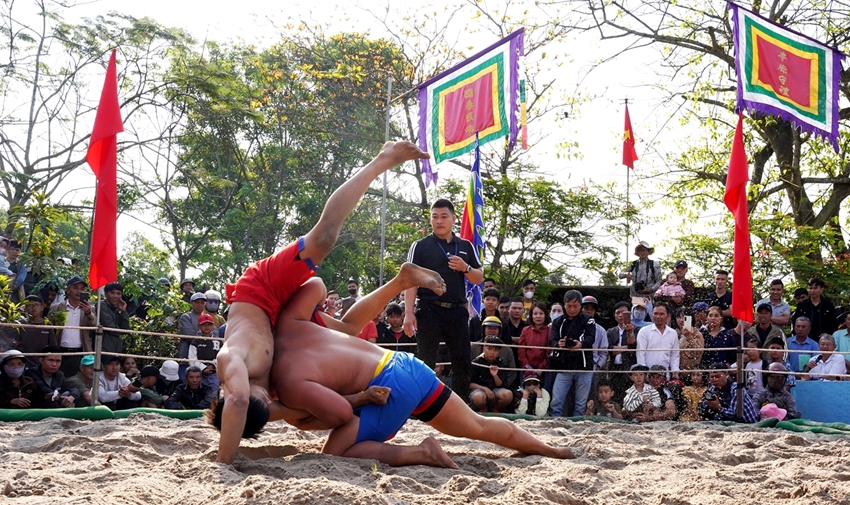 HNN.VN - On the morning of the 6th day of the first lunar month (February 22), Thu Le Village wrestling arena (Quang Dien Commune) officially opened, attracting a large crowd of locals and visitors from neighboring provinces and cities.