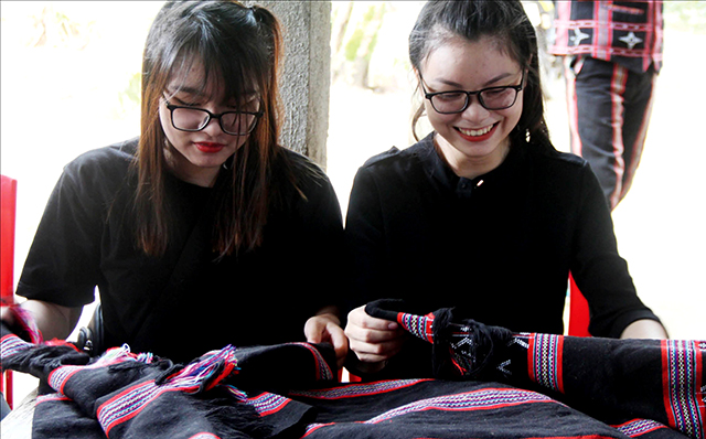 The program which brought students majoring in fashion design to learn about Zeng weaving of Ta Oi ethnic minority group (A Luoi) is a component of the collaboration between Van Lang University and the Institute of Vietnamese National Art and Culture campus in Hue.