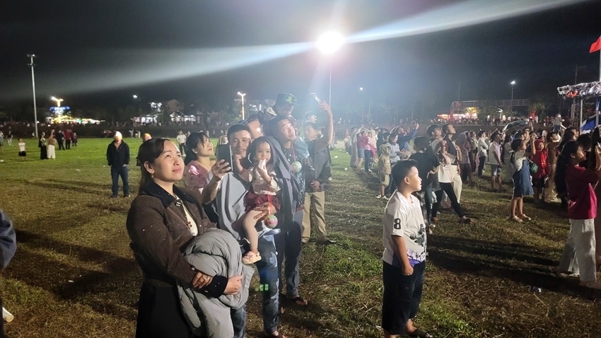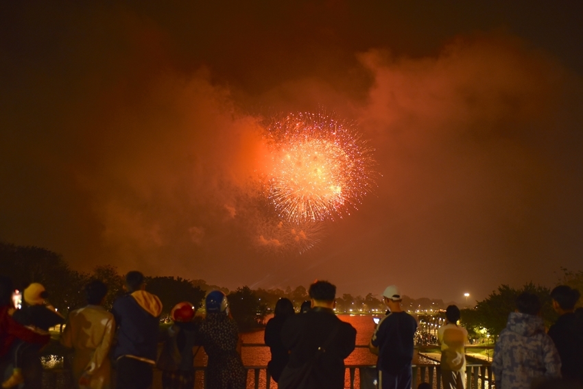 This year, in addition to 1,000 high-altitude firework shells at the Ky Dai - Ngo Mon area and 40 low-altitude firework sets in Phong Dien, Chan May - Lang Co also set off 40 low-altitude sets for approximately 15 minutes.