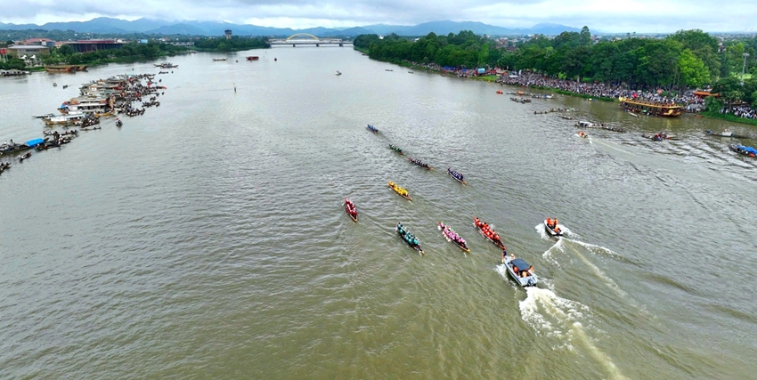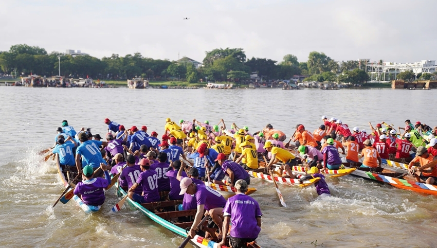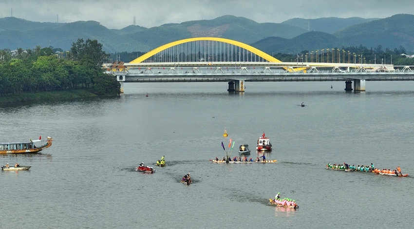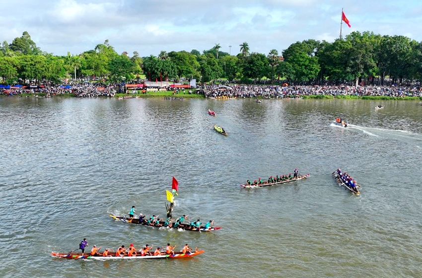 The boat racing brought together nearly 500 male and female athletes from 10 teams, including: Trieu Son Dong (Hoa Chau Ward), Trieu Son Trung (Huong Tra Ward), Giap Trung (Kim Tra Ward), Van The (Thanh Thuy Ward), Thanh Ha (Kim Long Ward), Niem Pho (Quang Dien Commune), Co Gioi (Dan Dien Commune), An Dong (An Cuu Ward), Thuy Phu (Phu Bai Ward), and Thuan An Ward.