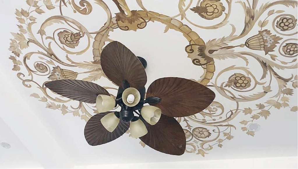 Using acrylic colors with high durability which can last over 20 years, painting cloud ceiling murals is not too different from ordinary wall murals. But with a difficult position, height and special perspective, this line of paintings requires skillful workmanship and technique. In addition, with different characteristics of ceiling arches, way of thinking and way of designing patterns and textures of each house, there is no common denominator.