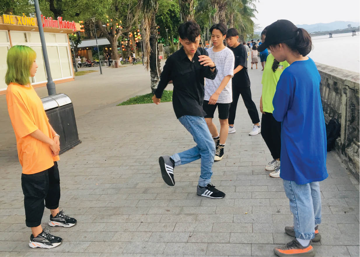 “In Hue, Shuffle dance had a scattered appearance very early, however from 2016 onwards, there appeared some groups starting to practice this type of dance,” said Duong Dang Quoc Huy, the boy who has been pursuing Shuffle dance for four years.