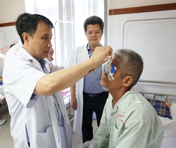 In the afternoon of the same day, the doctors of the Ophthalmology Center together with Dr. Pham Ngoc Dong conducted corneal transplants for 2 patients successfully. Just a day after the transplant, the two patients burst with joy when they found the light again.