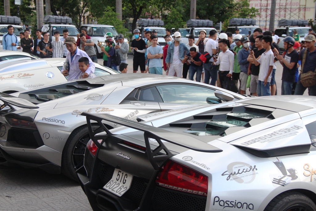 The fleet of supercars includes dozens of famous car brands such as Lamborghini, Bugatti Veyron, Ferrari, super luxury Rolls Royce and dozens of Range Rover. Many people watched and praised the supercars as they have never seen a large number of such expensive supercars coming to Hue.