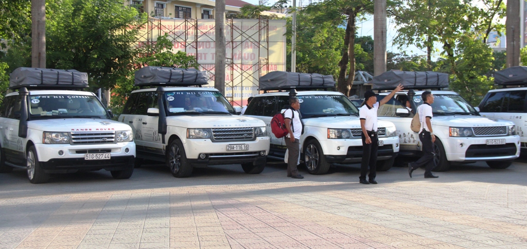 The fleet of cars is neatly parked immediately after the journey from Da Nang to Hue